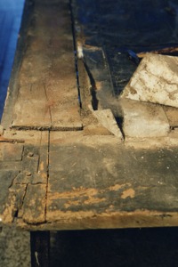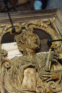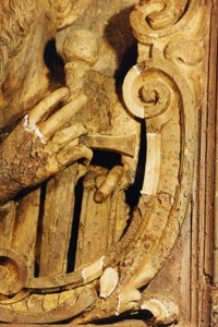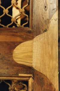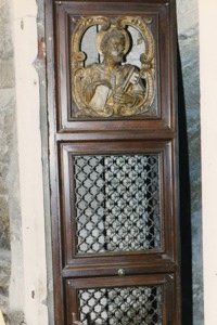 Porta lignea con intagli. sec.XVI - Carcere Mamertino - Restauro eseguito per conto della Soprintendenza per i Beni Artistici e Storici di Roma.