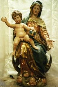 Wooden sculpture, polychromy and gold. End of the 16th Century. Madonna del popolo.